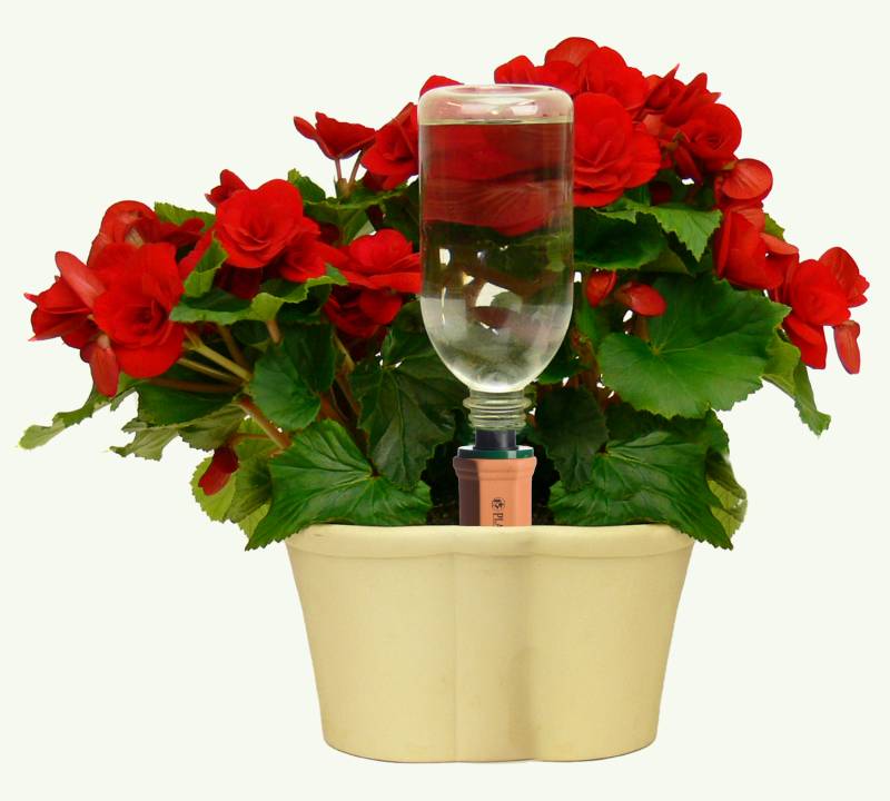 Plastic bottles come in a myriad of sizes. Select a bottle size that looks good with your smaller plant, and not so large that it might tip the plant over. Every Recycle a Plastic Bottle stake set comes with a bottle adapter to join the stake and bottle into a stable unit that will be leak and spill free.