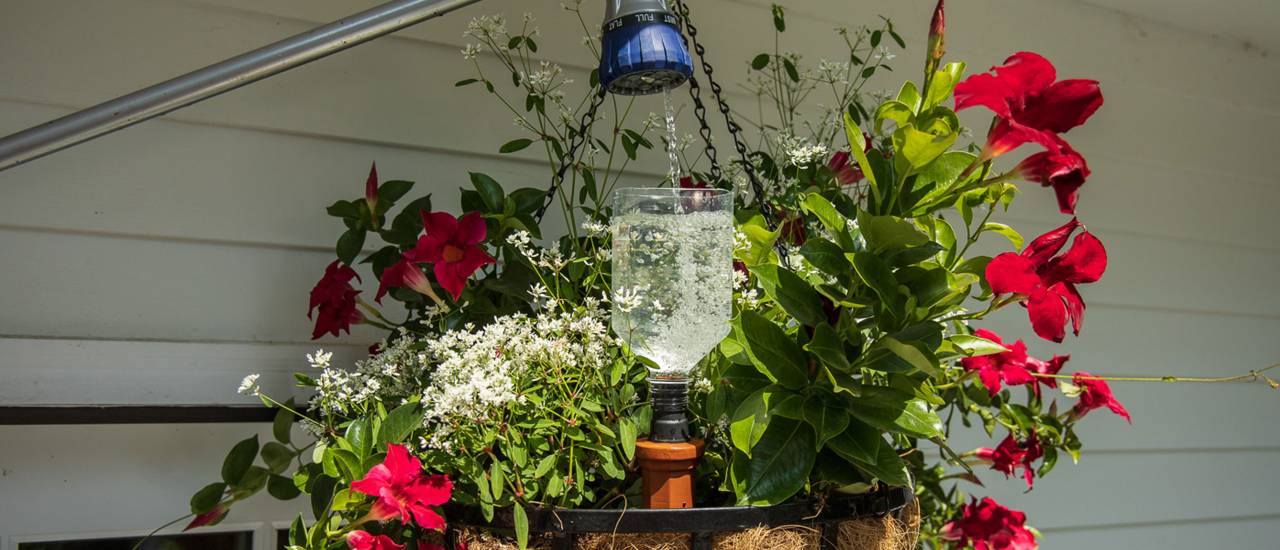 The unique EZ Fill Stake allows the use of a bottle that has been cut so that it can be filled directly with a hose or a watering can.